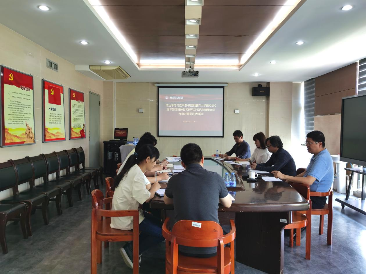 5月10日上午,美术学院召开党委理论中心组扩大学习会议,学习研讨习近平总书记致厦门大学建校100周年贺信精神和习近平总书记在清华大学考察时重要讲话精神。党委书记赵立新、副院长(主持工作)罗礼平、副院长王英暎、党委委员王裕亮及全体科级干部参加了学习。会议由党委赵立新书记主持。