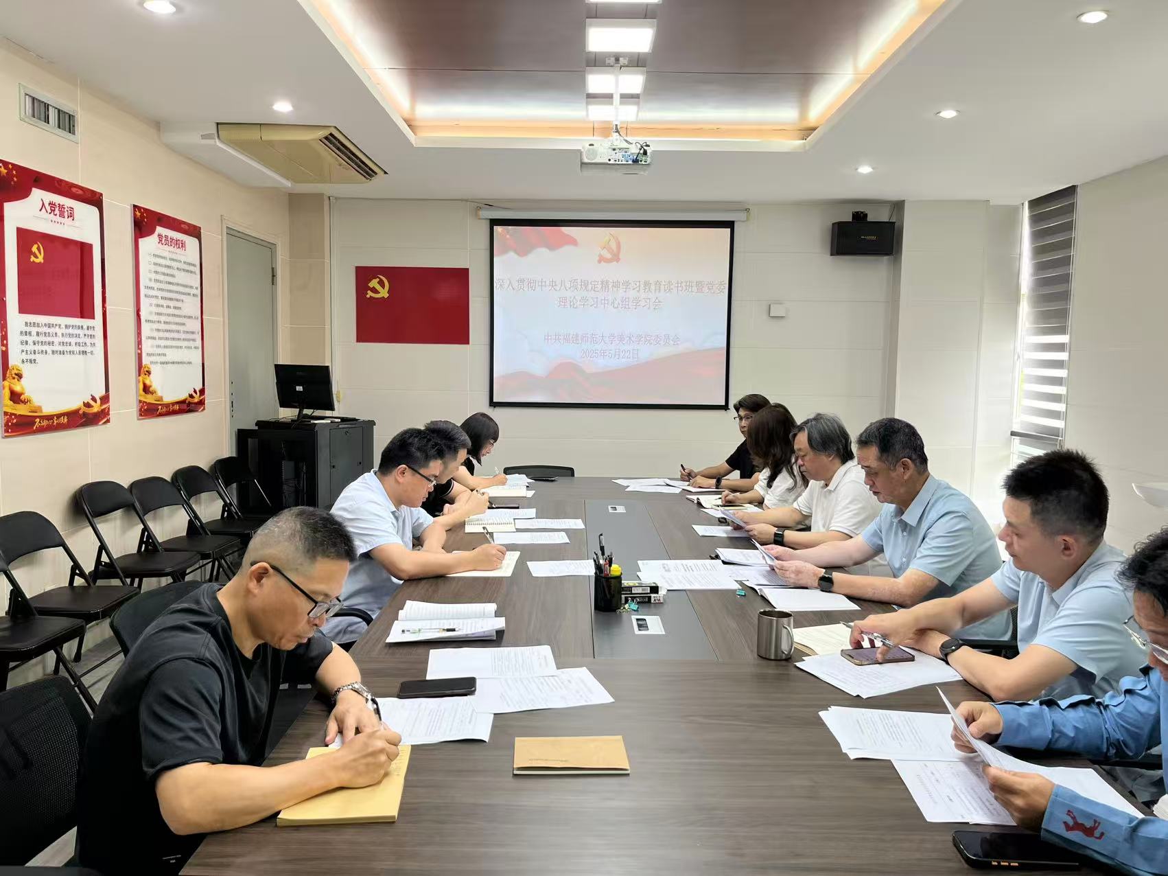 5月22日,美术学院党委召开深入贯彻中央八项规定精神学习教育第四期读书班暨院党委理论学习中心组学习会,学习交流《党的十八大以来深入贯彻中央八项规定精神的成效和经验》《八项规定改变中国》有关精神。学院党委书记张栋作重点发言,其他领导结合工作实际谈学习体会。学院党政领导班子成员、党委委员以及各科室负责人参加会议。