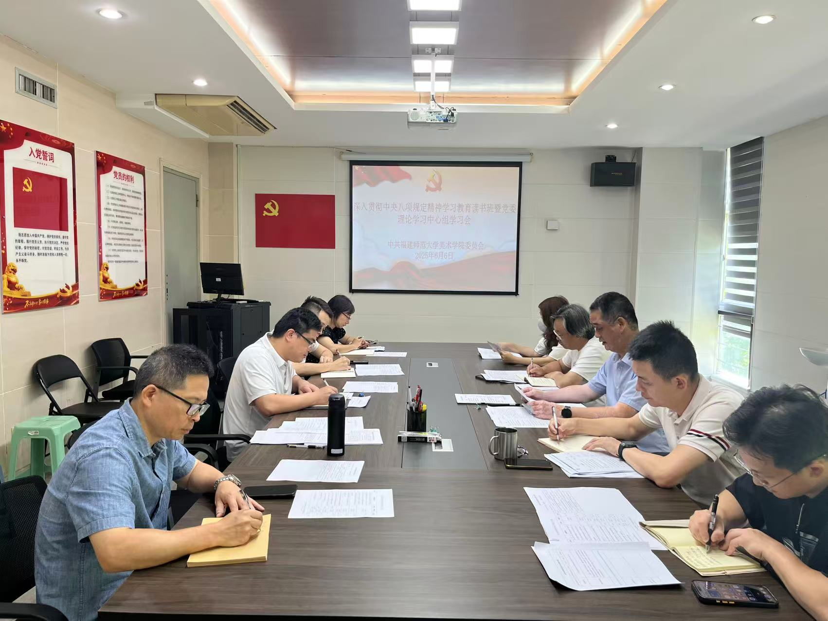 6月6日,美术学院党委召开深入贯彻中央八项规定精神学习教育第五期读书班暨院党委理论学习中心组学习会,学习交流习近平总书记关于推进党的自我革命和反腐败斗争的重要论述以及《党政机关厉行节约反对浪费条例》,并结合近期中央层面通报的数起违规吃喝、严重违反中央八项规定精神典型案例开展了警示教育,就贯彻落实集中整治违规吃喝有关要求进行了强调部署。学院党政领导班子成员、党委委员以及各科室负责人参加会议。