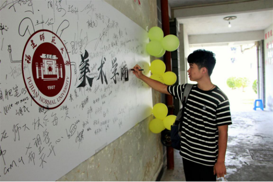 报名流程结束后,新生在纪念墙上写下自己对未来大学的寄语,留念拍照等等。新生在纪念墙上写下的祝福的那一刻,一切都带着神圣的意味,藏在欢声笑语中的,是学院对新生们最热烈欢迎。