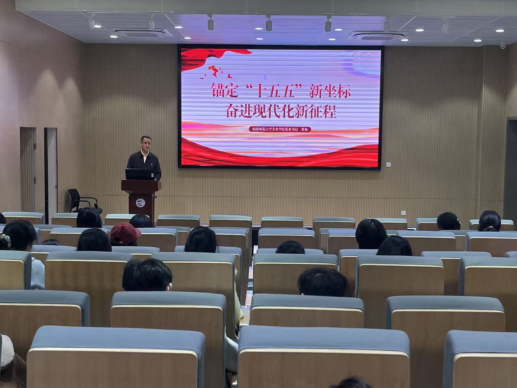 为深入学习贯彻党的二十届四中全会精神,11月26日下午,美术学院党委书记张栋为全体学生党员作题为《锚定“十五五”新坐标 奋进现代化新征程》的专题党课。