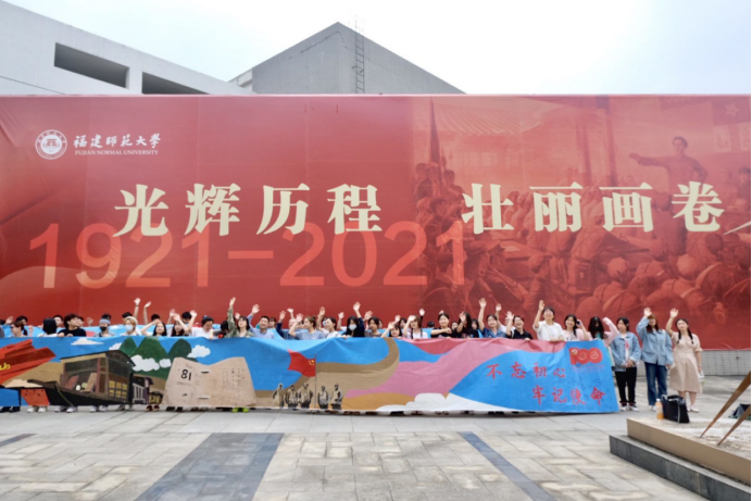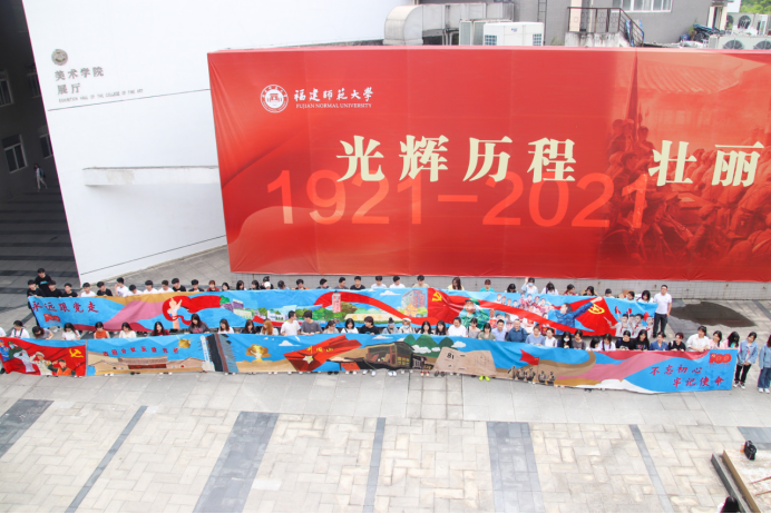 “青春礼赞,建党百年”手绘百米长卷主题活动旨在通过手绘长卷的形式讴歌建党百年辉煌,为建党百年献礼。此次主题活动经过草稿设计、初稿修改、调整完善、定稿绘制四个阶段。依托学院学科优势,由2018级国画山花班团支部、2018级国画人物班团支部、2019级环境设计班团支部、2019级综合绘画班团支部、2020级美术学一班团支部、2020级视觉传达班团支部、2020级环境设计班团支部等100多位团员,历时半个月的绘制绘完成,将建党历史标志性的历史事件绘制出来,形成波澜壮阔、精彩纷呈的画卷。