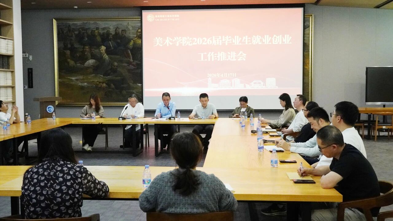 为充分发挥美术学院全员促就业合力,进一步助力毕业生理想就业,4月17日下午,美术学院召开2026届毕业生就业创业工作推进会。美术学院党委书记张栋,院长罗礼平、党委副书记黄智锋、副院长王英暎、黄忠杰等领导列席会议,各教研室负责人、专业负责人、教师代表以及毕业班辅导员参加会议。会议由罗礼平院长主持。