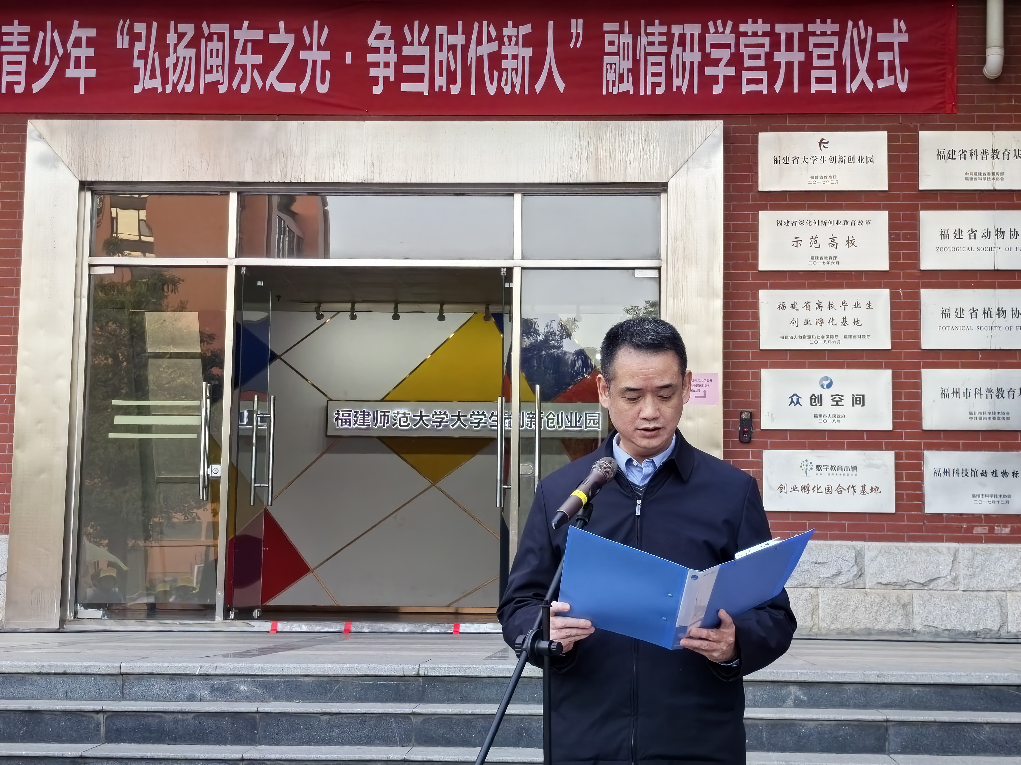 福建师范大学美术学院党委书记张栋致辞表示,本次研学活动对践行社会主义核心价值观,增强“四个意识”坚定“四个自信” 具有重要意义,希望同学们深度融入福建宁德的山美水清、山海壮丽,感受不一样的家园,在更大的世界中,认识自己,做最好的自己。并预祝研学活动取得园满成功。