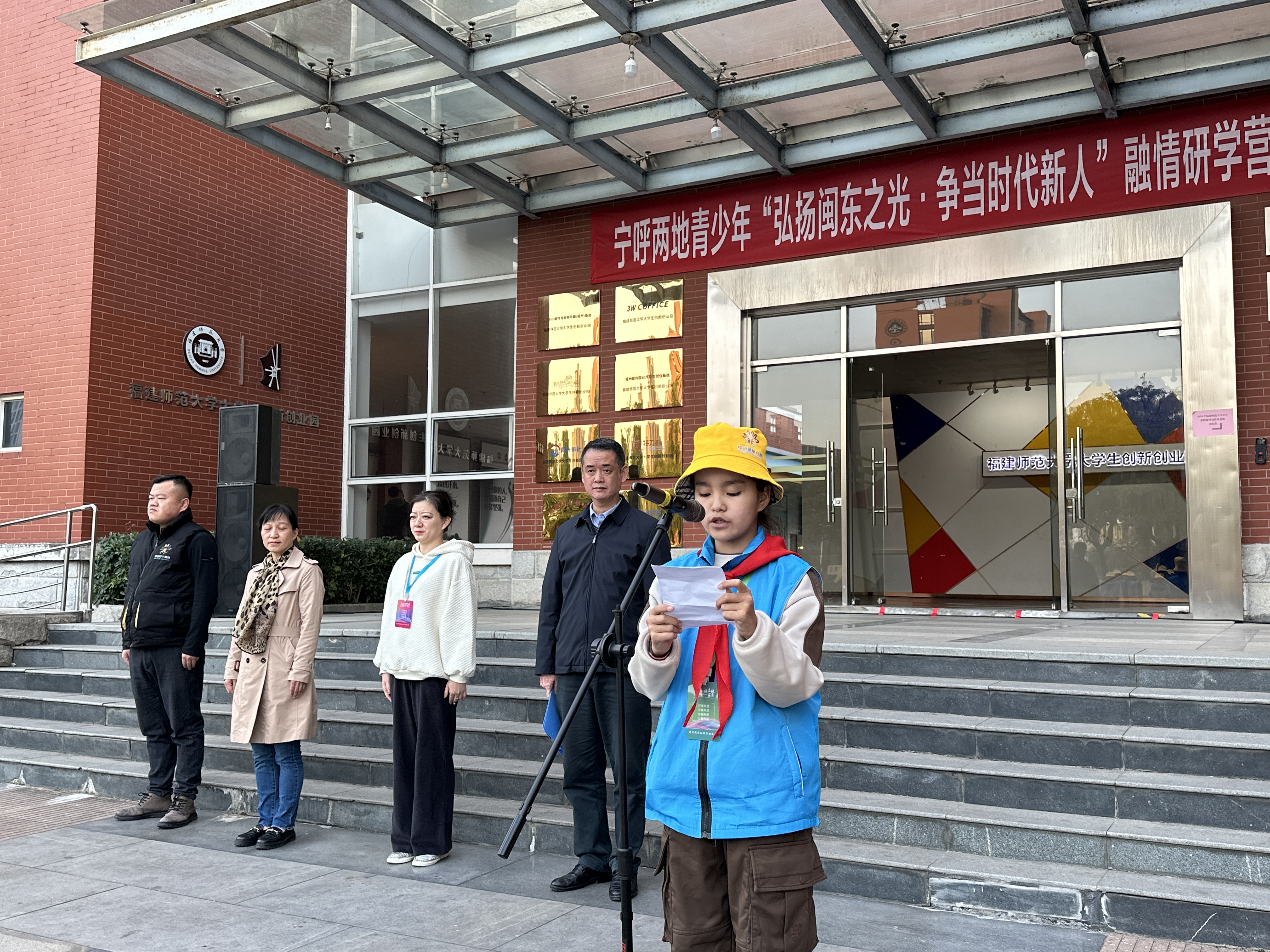 学生代表叶丽娜发言,先表达了同学们对研学活动充满期待,表示大家会珍惜此次研学机会,深入感受与家乡不同的闽东历史文化,提升自己的认知。